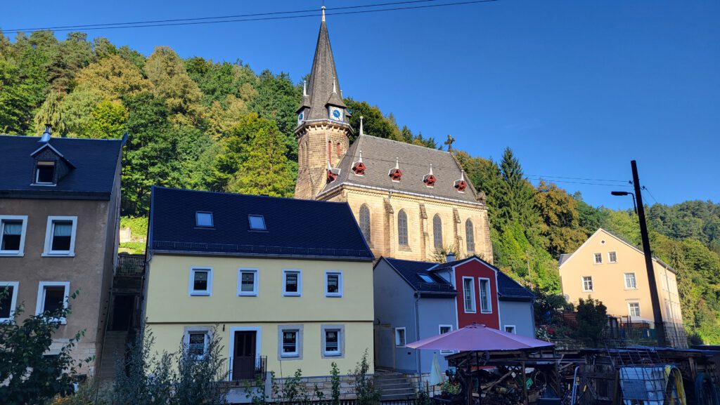 Weiter ging’s über Felder, Wiesen und Wälder nach Gorisch und Pfaffendorf nach Königstein, dem Ziel der heutigen Etappe.