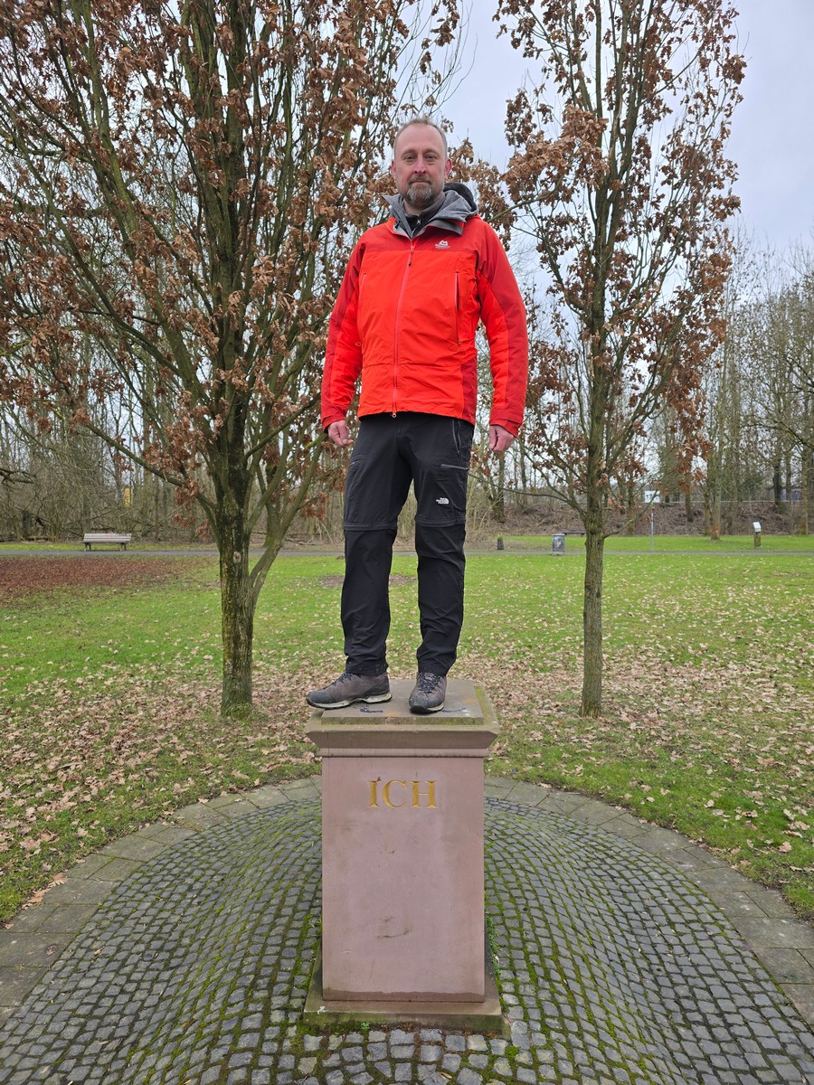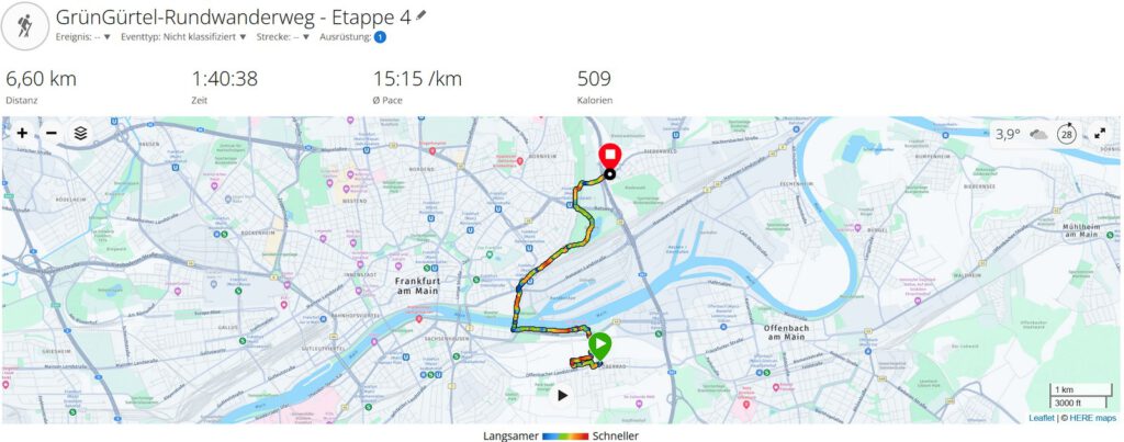 Etappe 4 – Blick von Oberrad nach FrankfurtEtappe 4 – An der GerbermühleEtappe 4 – Das „Ich“-DenkmalEtappe 4 – Blick von der DeutschherrnbrückeEtappe 4 – Blick von der DeutschherrnbrückeEtappe 4 – Blick von der DeutschherrnbrückeEtappe 4 – Das Weg-Bier Kiosk an der OstparkstrasseEtappe 4 – Komische Kunst – Elfmeterpunkt im OstparkEtappe 4 – Die Eissporthalle am Ratsweg